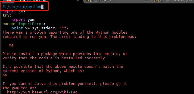1、修改/bin/yum的python版本,注意python版本对应的路径,指定使用python2.7作为yum的解释器:参考7.1