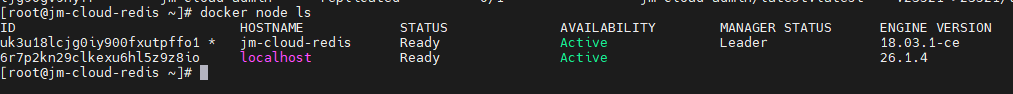 命令输出了加入swarm 集群的命令。通过 --token 选项来判断是加入为管理节点还是工作节点