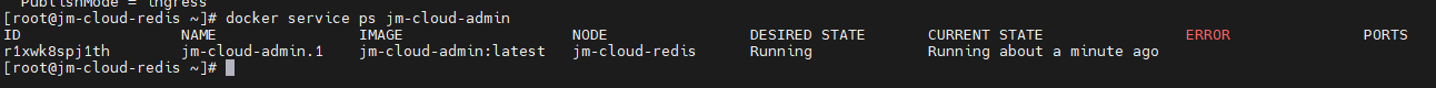 docker service create --replicas=1 --name=jm-cloud-admin --publish=23521:23521 jm-cloud-admin