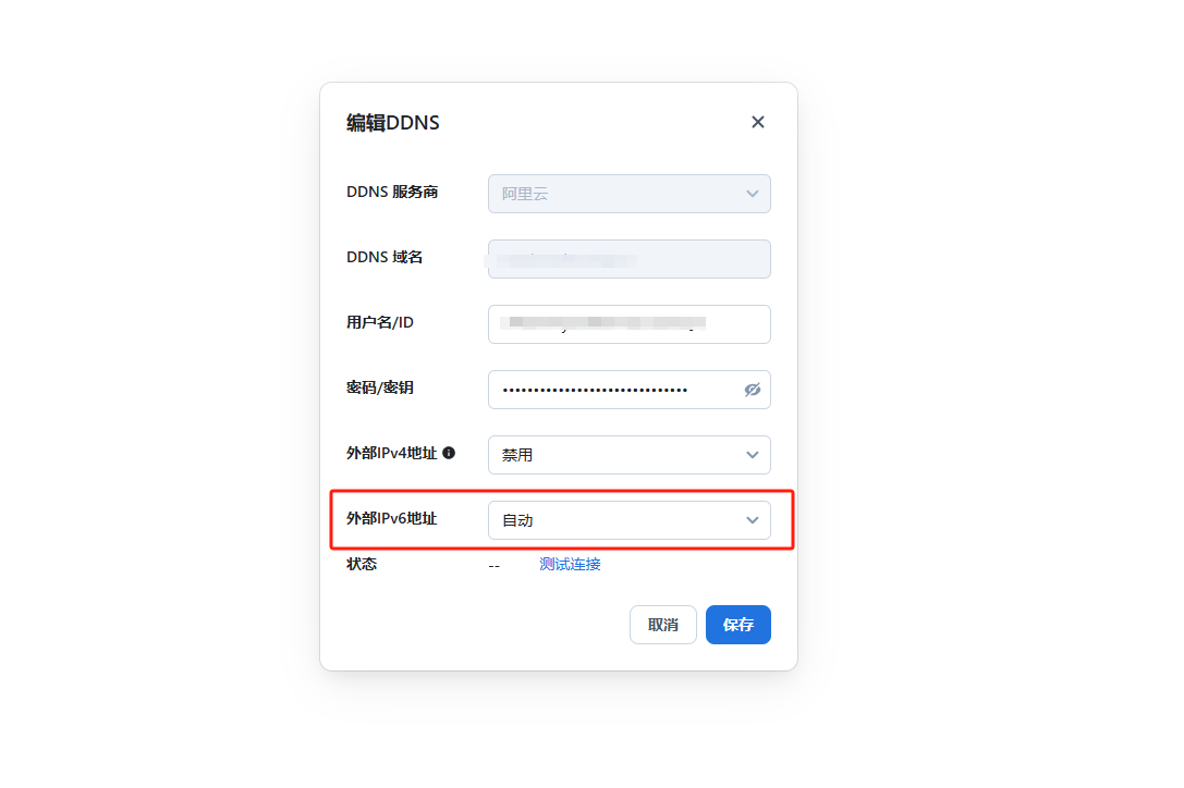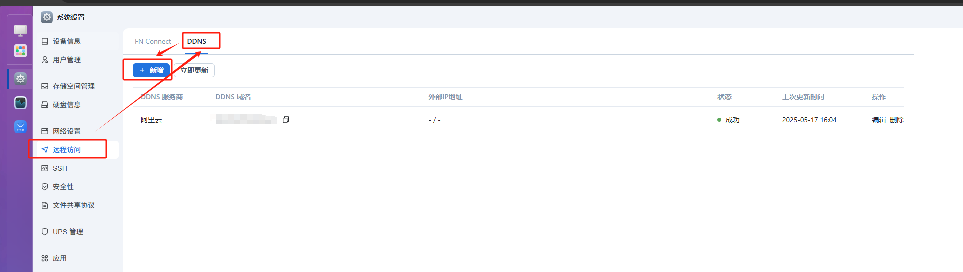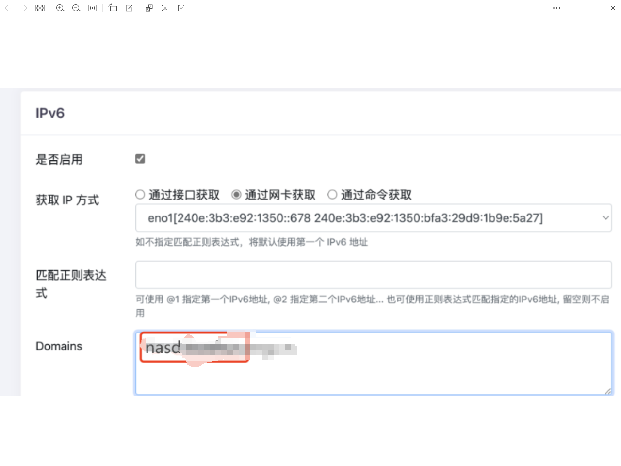 DDNS域名,填入自己解析的域名,如nasd.xxx.com