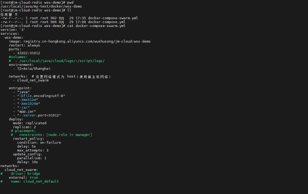 docker stack deploy -c docker-compose-swarm.yml --with-registry-auth wss--with-registry-auth:一定要要, 会自动把manage节点的远程仓库认证信息,带到其他子节点中