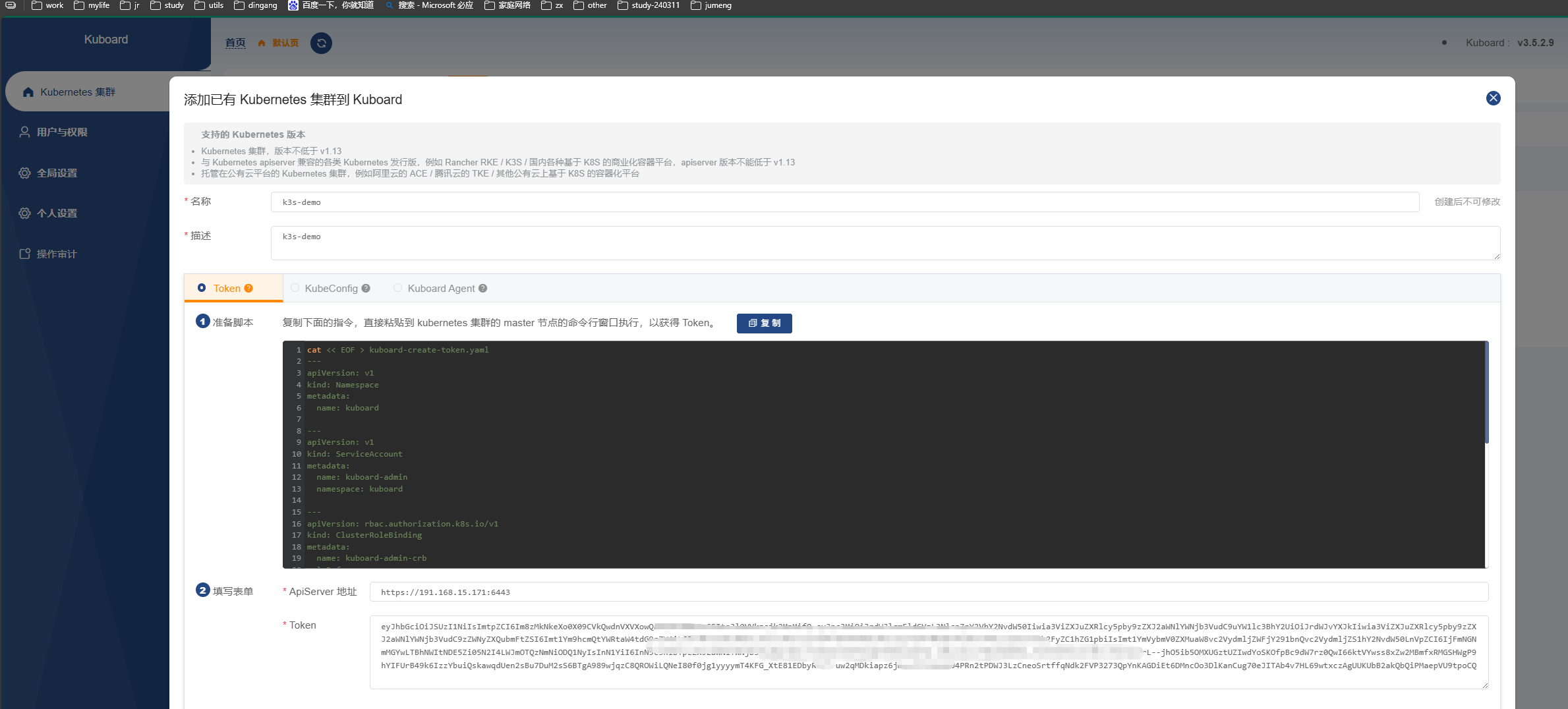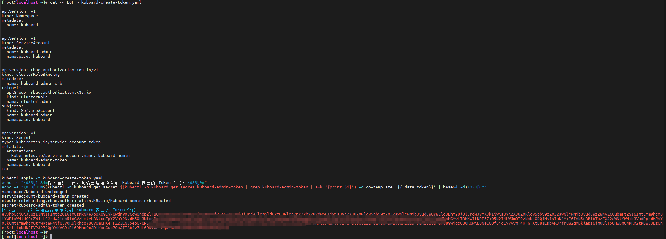 echo -e "\033[1;34m将下面这一行红色输出结果填入到 kuboard 界面的 Token 字段:\033[0m"