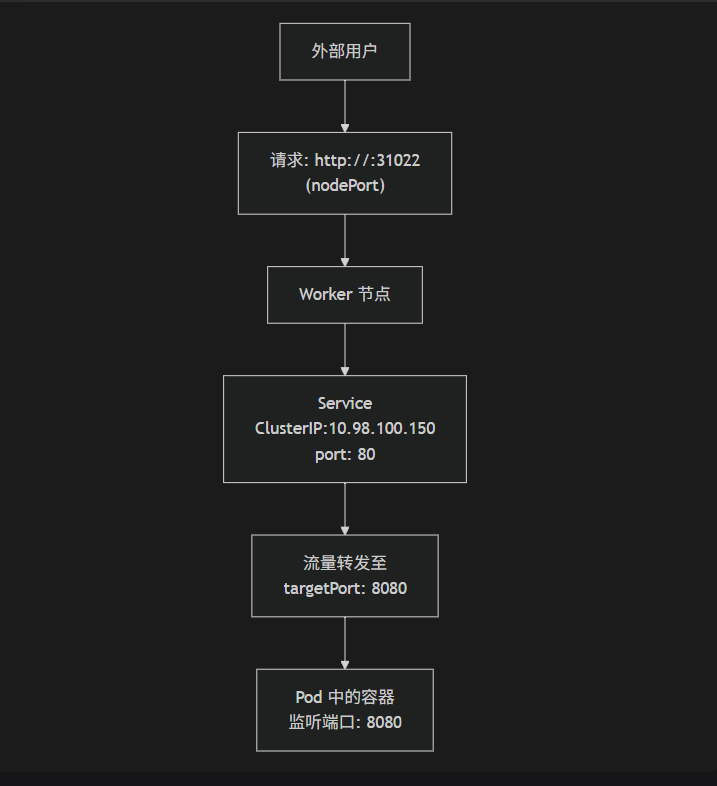 nodePort: 31022 # 【节点端口】外部用户通过 `<任何节点IP>:31022` 访问