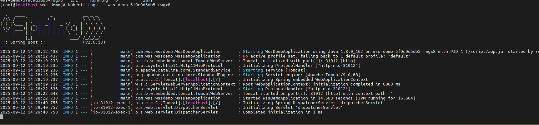 kubectl logs -f wss-demo-5f9c9d5db5-rwgx8