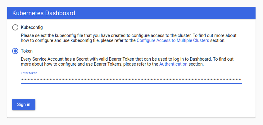 将上一个步骤中获得的 Token 输入到登录界面中,点击 Sign in 按钮,完成登录