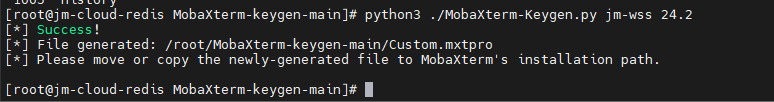 python3 ./MobaXterm-Keygen.py work-wss 24.2work-wss:安装MobaXterm系统的账号,我这里是win11的登录账号
