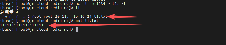nc -l -p 1234 > t1.txt-l:使用监听模式,管理和控制传入的数据