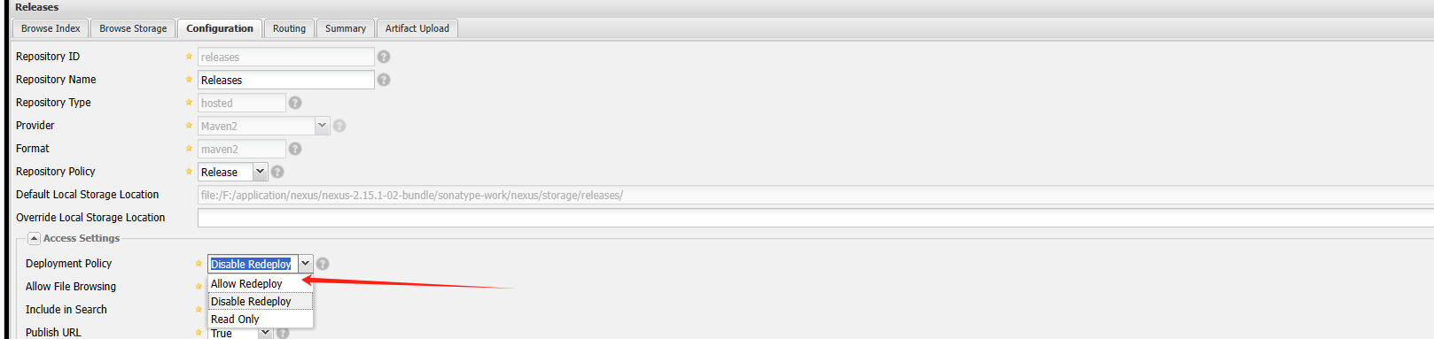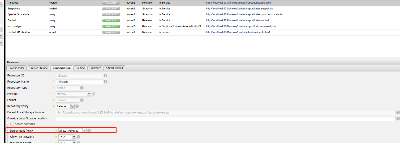 将release仓库和Snapshots仓库设置成谁都可以上传,正常是不允许的 ,但是开发情况下,可以先这样做