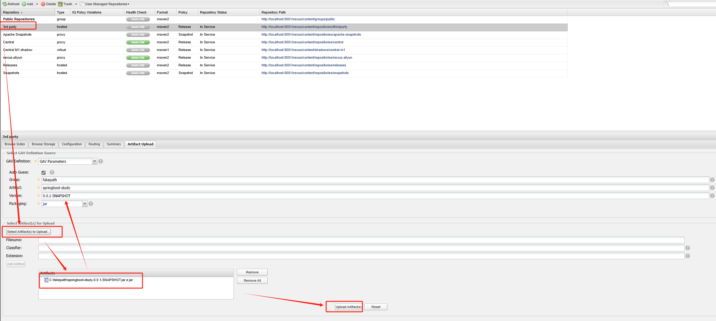 2、本地三方仓库,一般用于自己手动上传的jar,如oracle,再中央库/阿里仓库没有的jar,或者自己的jar,可以上传到当前仓库