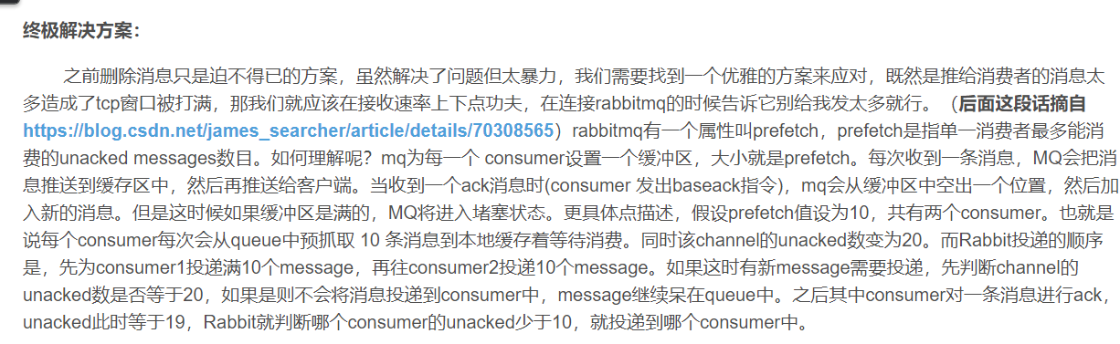 如上面Prefetch=2,那么当有两个消息没有正常ack的时候,MQ就会不再发送消息了