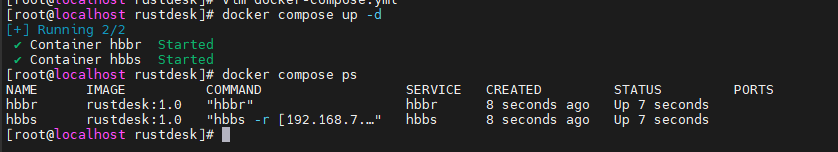 如果您无法使用 -td 看到日志,可以通过 docker logs hbbs 查看日志。或者您可以使用 -it 运行,hbbs/hbbr 不会作为守护进程模式运行。