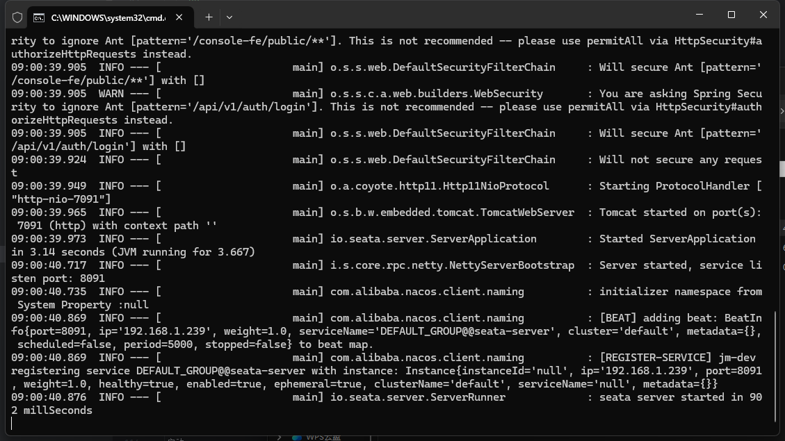 Copy to clipboardErrorCopied在nacos中创建公用配置文件jmSeataServer.yml