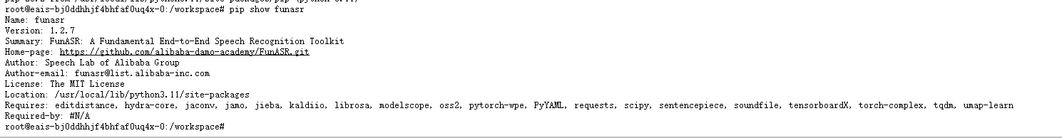 pip3 install -i https://pypi.tuna.tsinghua.edu.cn/simple -U funasr