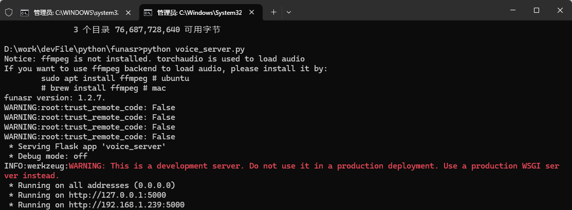 LogFactory.log.info(f"启动 FunASR 语音服务器...")