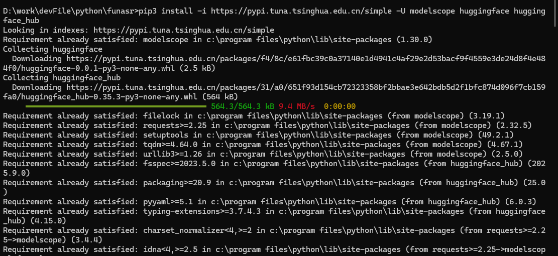pip3 install -i https://pypi.tuna.tsinghua.edu.cn/simple -U modelscope huggingface huggingface_hub