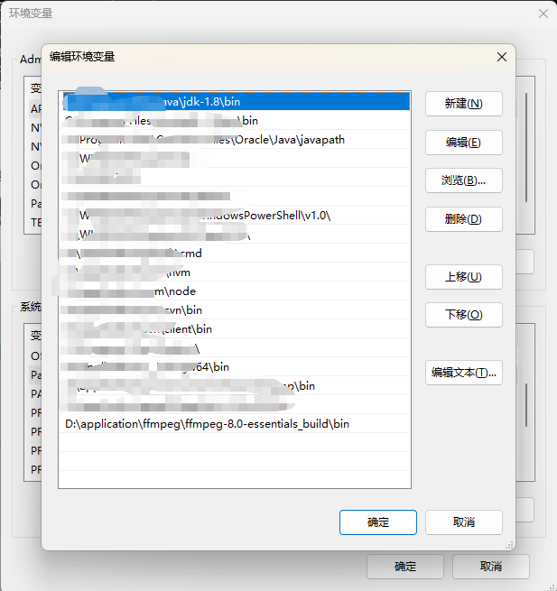 官网下载,直接解压,添加系统环境配置即可:https://www.gyan.dev/ffmpeg/builds/